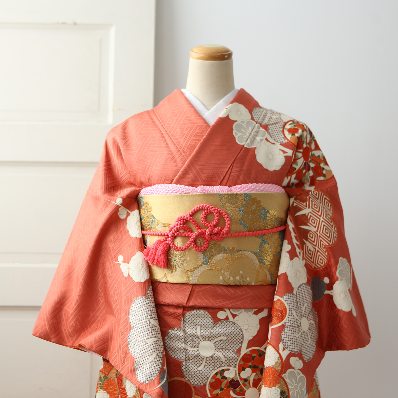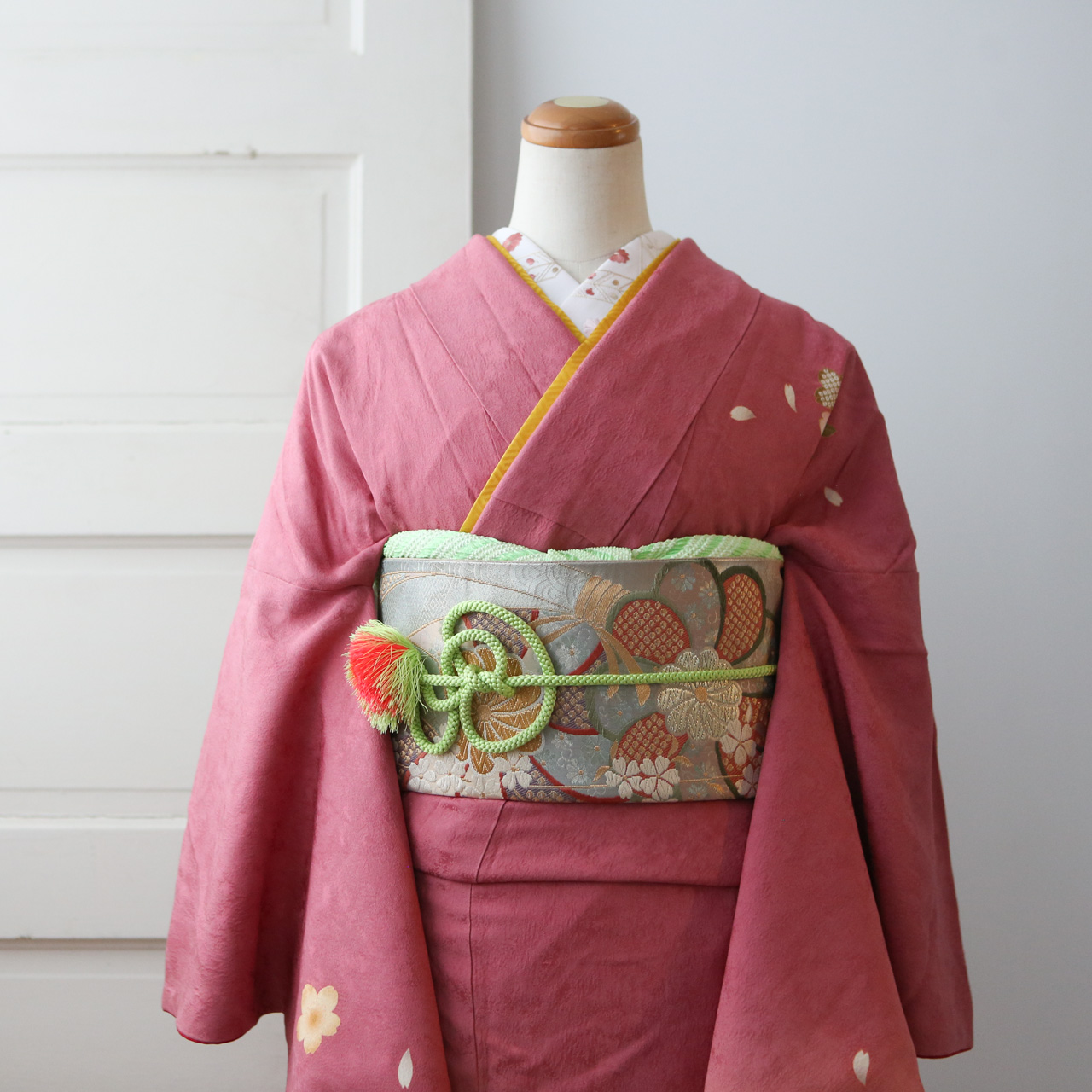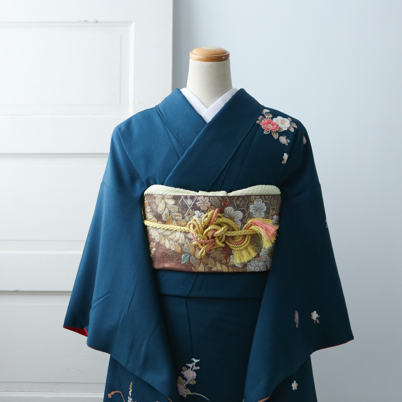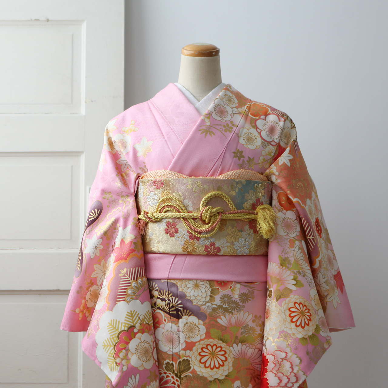 BEIGE BLUE PINK ヴィンテージ 振袖