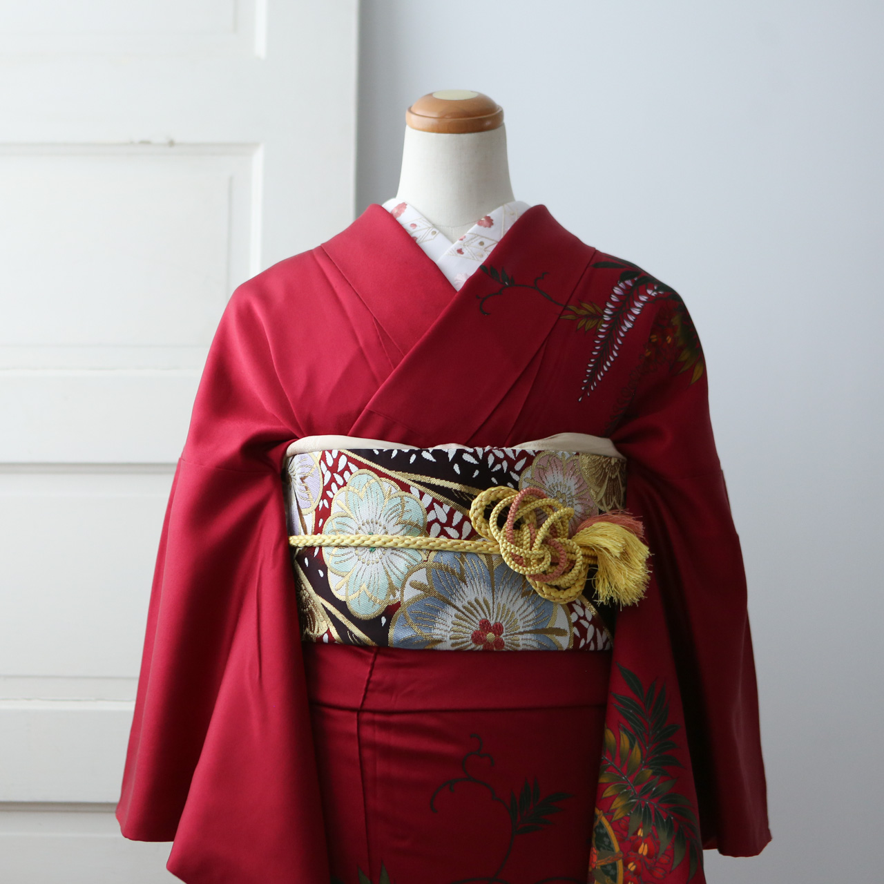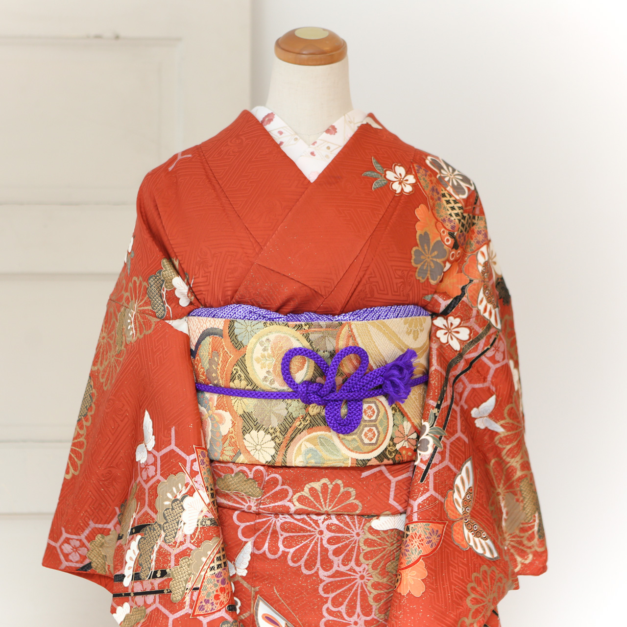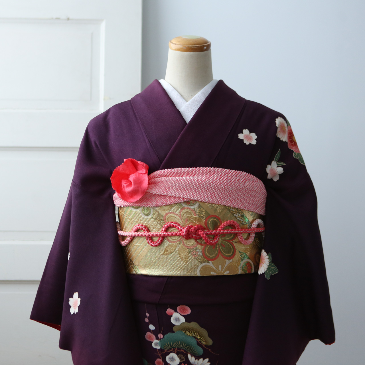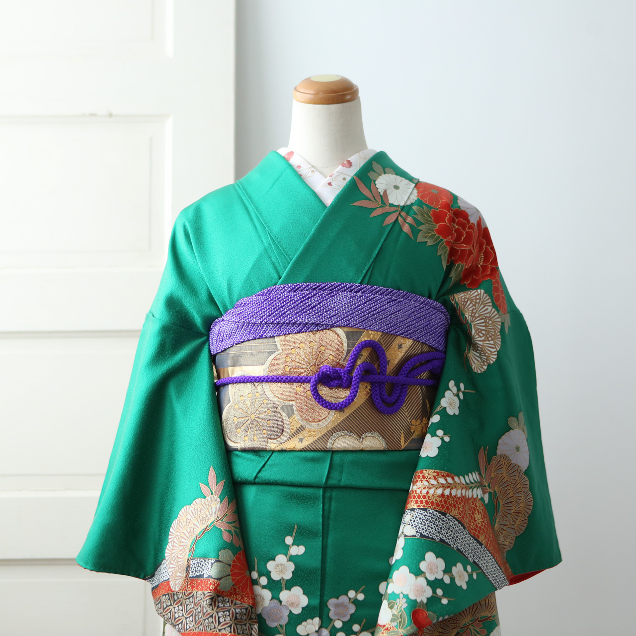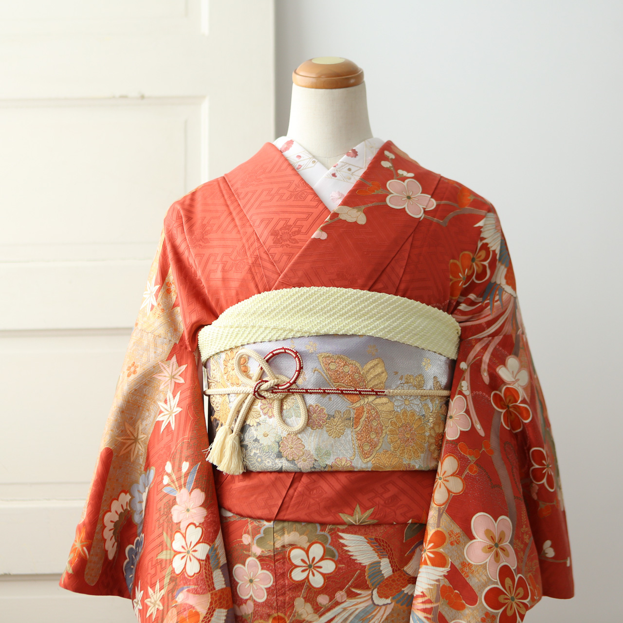 BEIGE BLUE PINK ヴィンテージ 振袖