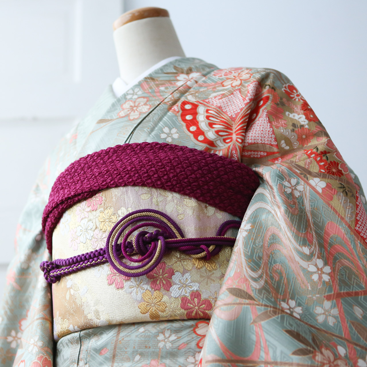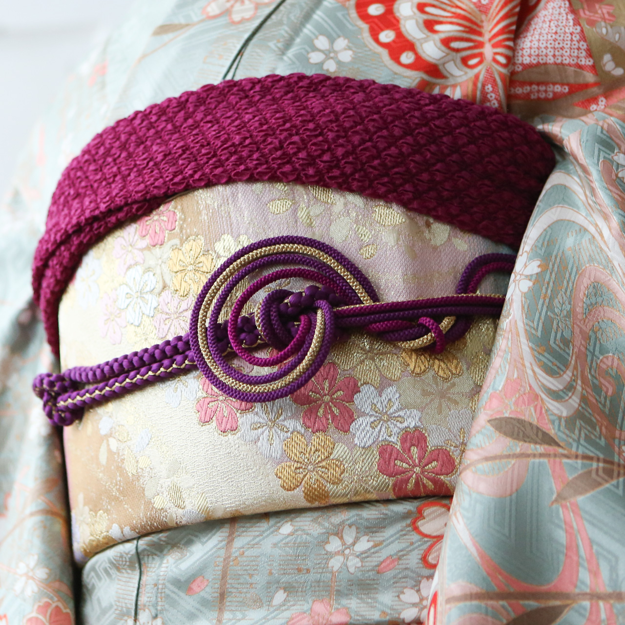 帯:ゴールド系・ブラック系等からもお選び頂けます。帯揚げは帯に合わせお選び致します。