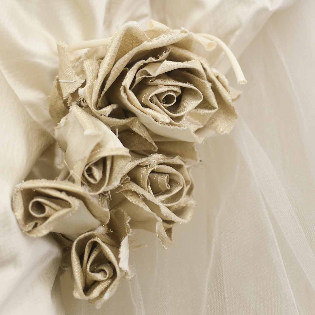 ディティール:サテン・チュール・刺繍・ビース・フリル・ドレープ・フラワー